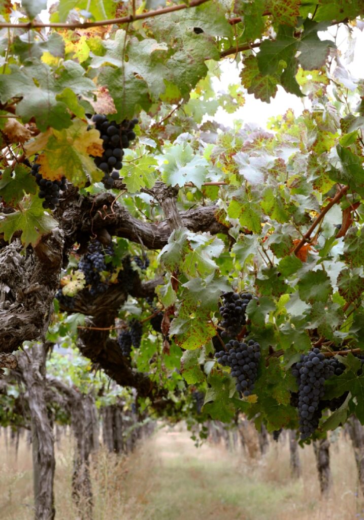 Organic vineyards. Well-drained clay-loam soils with rocky material.